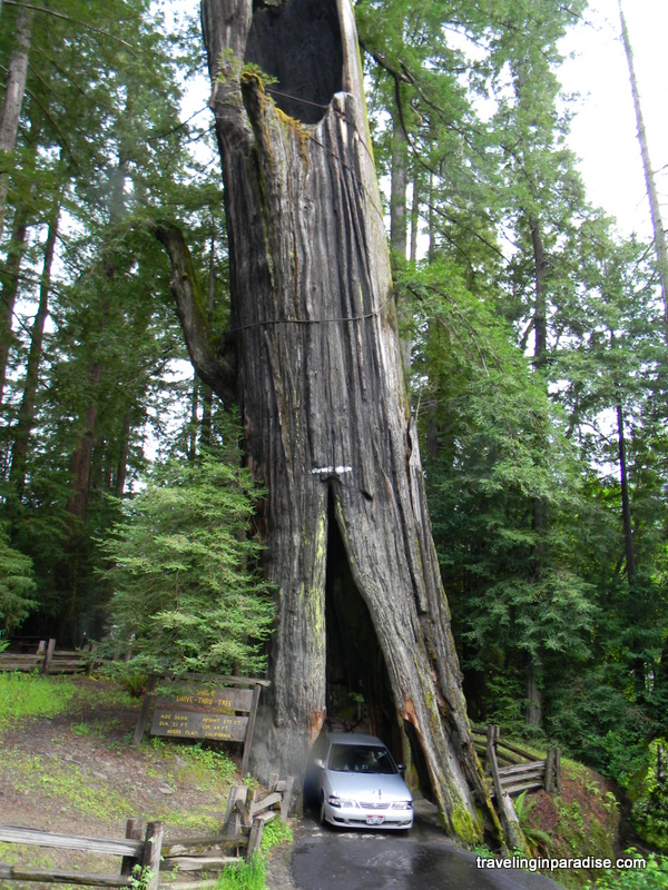 Of two well-known tree tunnels in Central California, the one in Tuolumne Grove is through a dead tree, and the Wawona Tree in Yosemite fell over in 1969. On California’s Redwood Coast, however, there are three drive-through redwoods still going strong, all of them operated as tourist attractions.