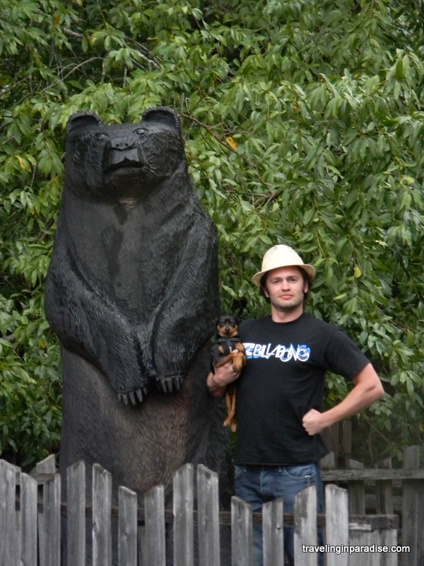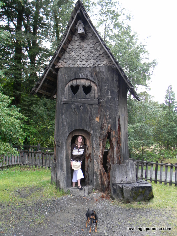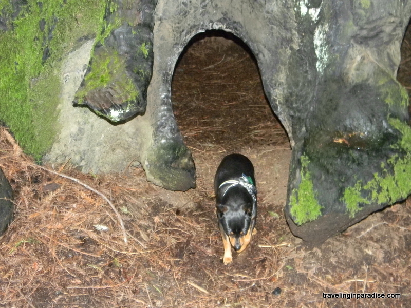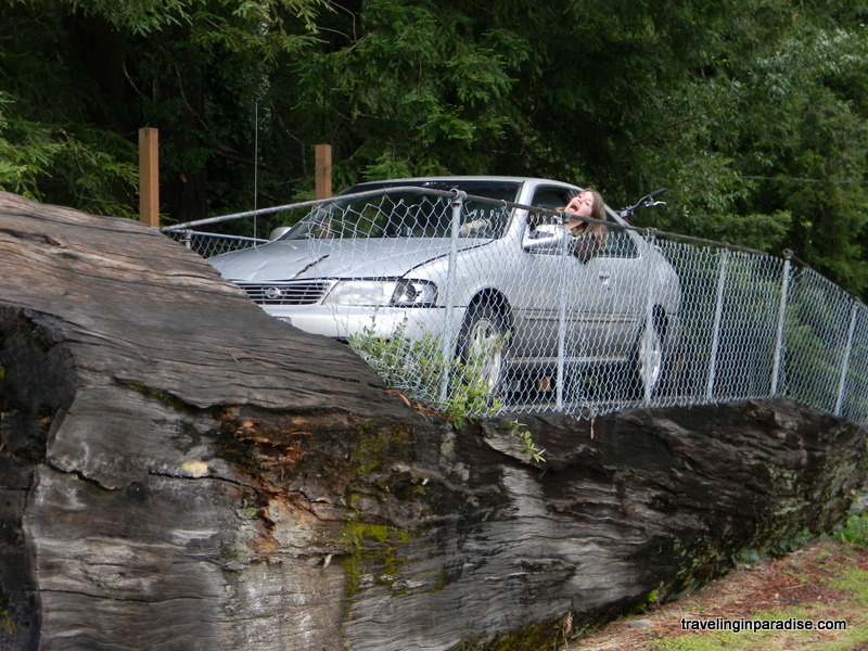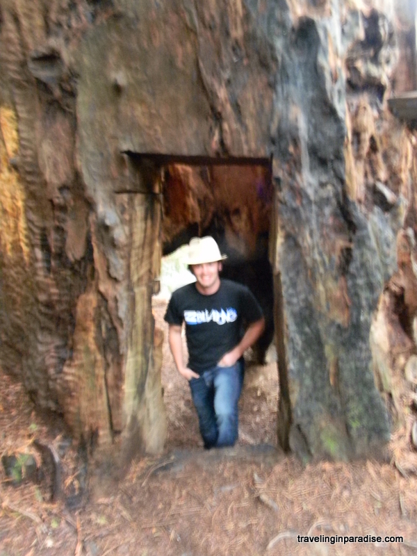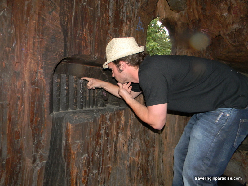 Sometimes you just want to be a kid again, to just be silly. I love having fun and being random, that is one of the reasons I love to go to these road-side tourist attractions. They always have something to offer, this one did not disappoint. There was something unique about each drive thru tree, of course my favorite part of this tree was the drive to get there! I absolutely love avenue of the giants! Unlike most of the other drive thru trees, shrine tree looks like it was split on the bottom by nature. The huge split is what you drive through. It must have been our lucky trip because we had the park all to ourselves! We drove through the tree, then headed to the walk through tree, there was even a little hole for our dog to walk through. They have a chunk of a fallen tree you can drive onto for some great photos, but our favorite thing was the treehouses! They have two houses made from the hollowed out trunk of a redwood, that are so cute, they look like something out of a fairy tale book. We may have been in our mid twenties, but who says you can’t play in a treehouse as an adult. Sure, this is a great place for kids to play, and even though Danny and I haven’t been kids in awhile we too wanted to play. One of the treehouses had two stories, we climbed up then took a bunch of random silly photos, our favorite photos came from the library of books made from wood. I don’t know what it was about these books, but we found it hilarious! Pardon the pajama pants this was day two of sleeping in the car!