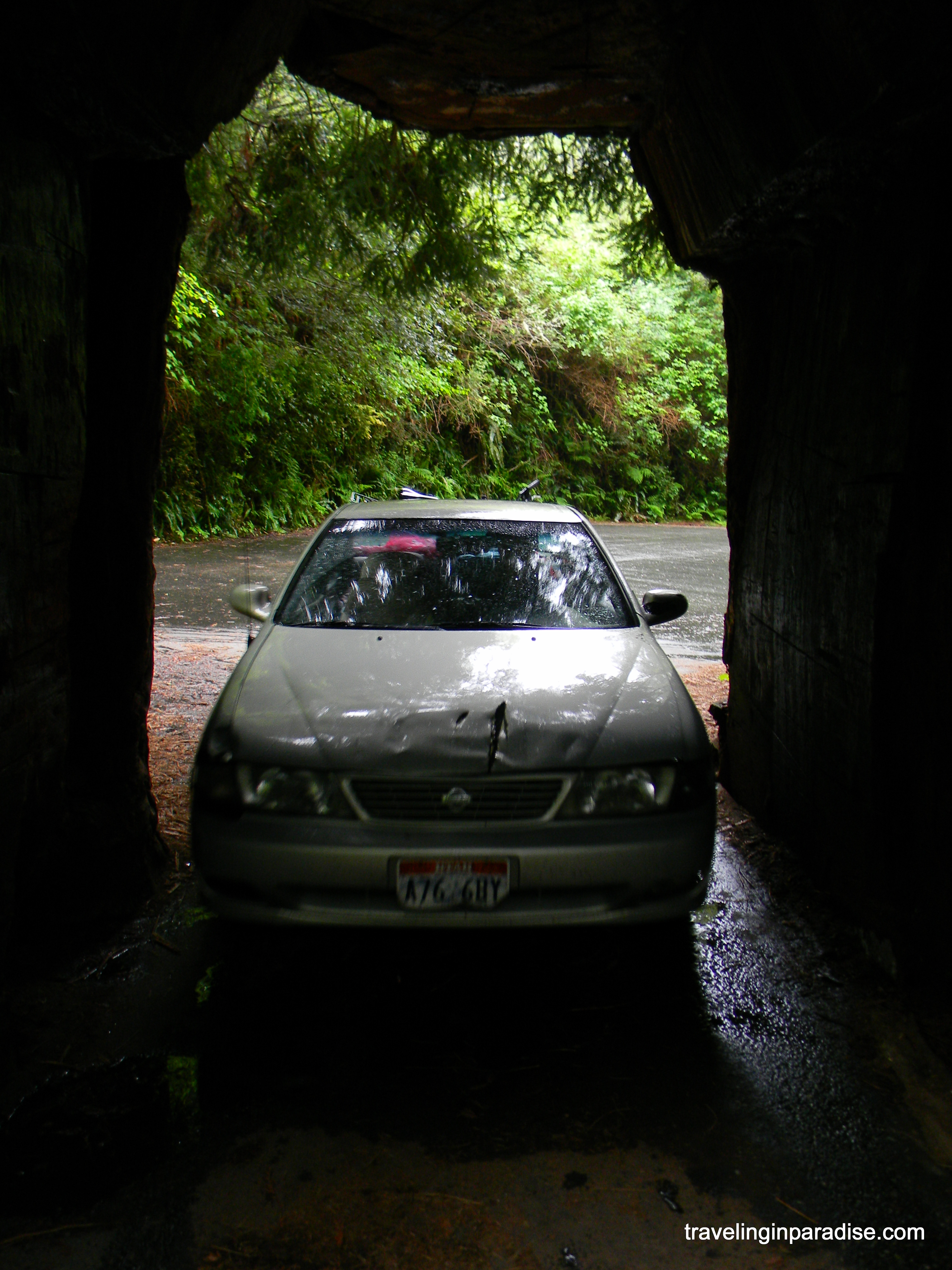 When we got there, there wasn’t anyone there. Danny drove through first, parked in the tree and climbed out his window to prove I would be fine driving through this tree. Since, he was already out, we stopped took a photo and circled back around so I could drive through it. I had plenty of room, I am sure most vehicles will be able to get through this tree. This tree is located off of Highway 101 in Klamath, California. It cost $5 to drive through this tree.